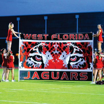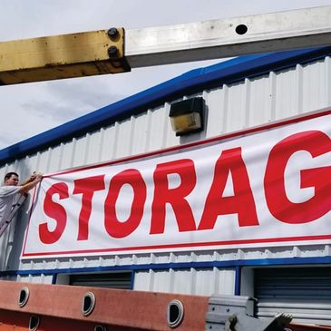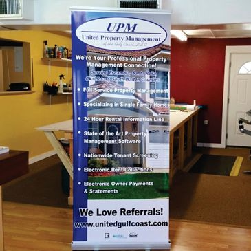 All of our banners come with grommets so they can be hung. We also offer banner stands for indoor advertising.